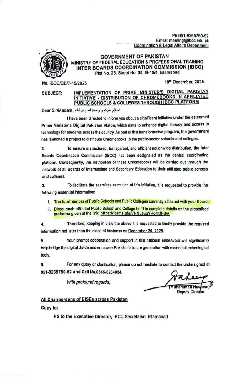 News, Notifications Distribution of Chromebook inf Affiliated Public Schools and Colleges Through IBCC Platform https://forms.gle/VNNu6zgYHoNtfNj9A