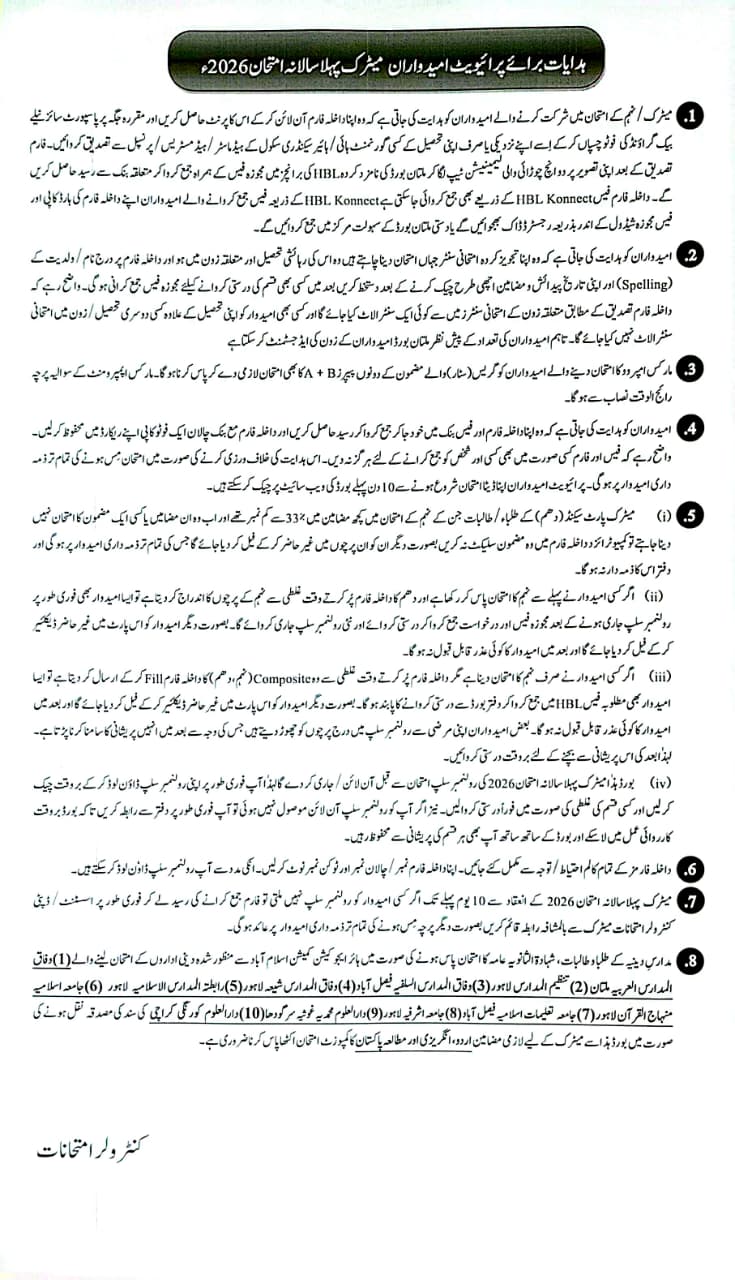 Copyright 2026 © Board of Intermediate and Secondary Education, Multan, Pakistan